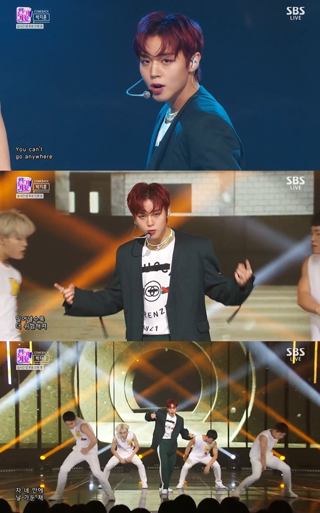 이날 박지훈은 레드 컬러의 헤어스타일과 한층 성숙해진 분위기, 비주얼로 시청자들의 시선을 사로잡았다. 단번에 두 눈을 사로잡은 박지훈은 더 깊어진 카리스마와 함께 랩, 보컬, 퍼포먼스를 완벽하게 펼쳐내며 완성도 높은 컴백 무대를 꾸몄다.